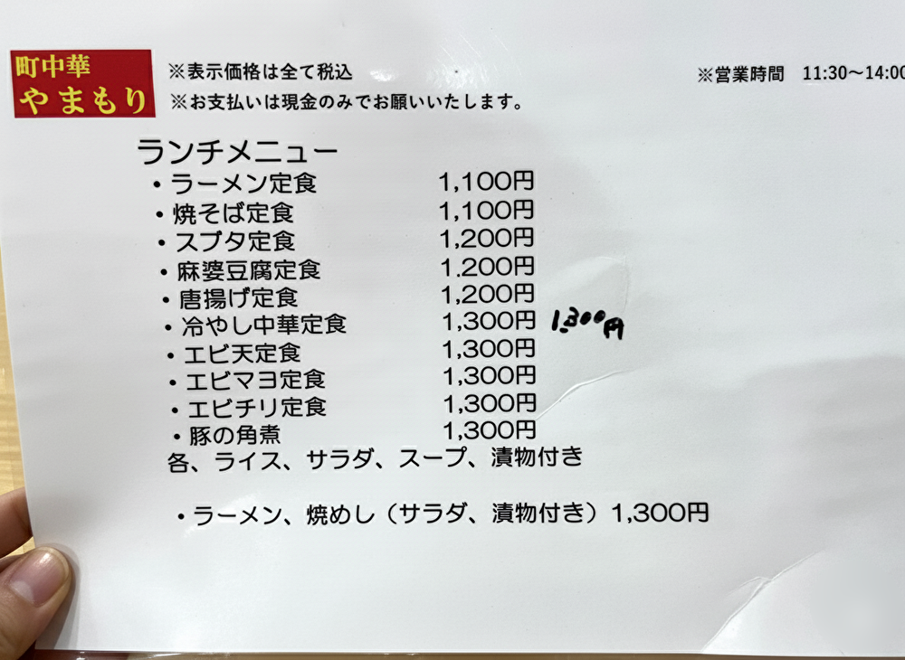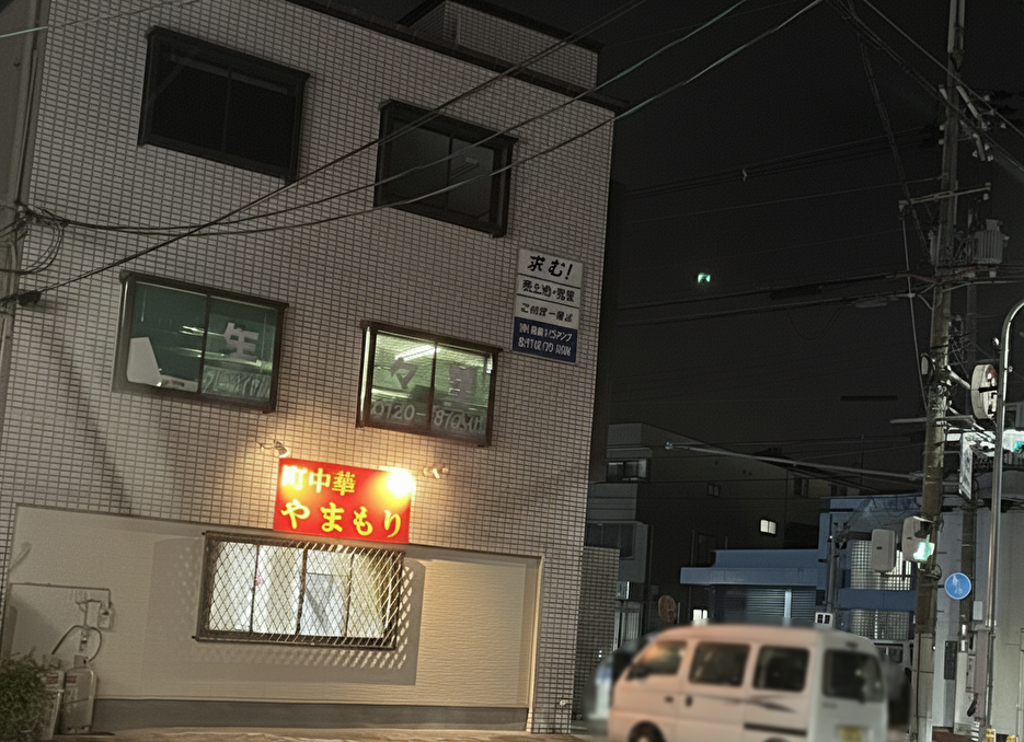 国道168号線の小明町交差点の一角に、町中華屋さんがオープンしています。赤い看板が目印の「町中華 やまもり」です。