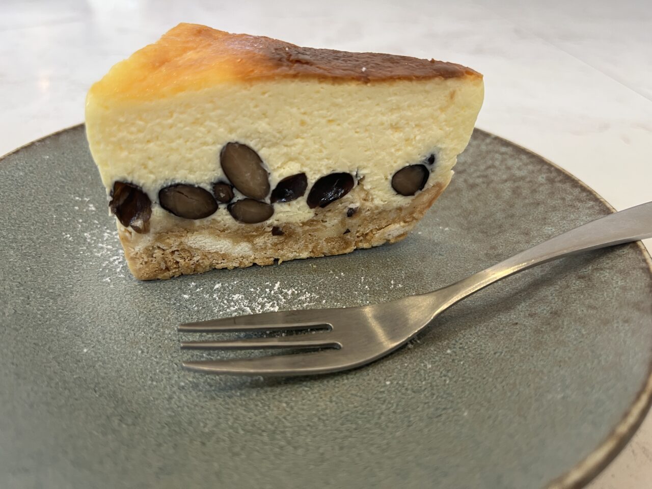プラス300円で自家製ケーキをセットにできます。この日は黒豆チーズケーキ。やさしい味わいで何個でも食べられそうです。