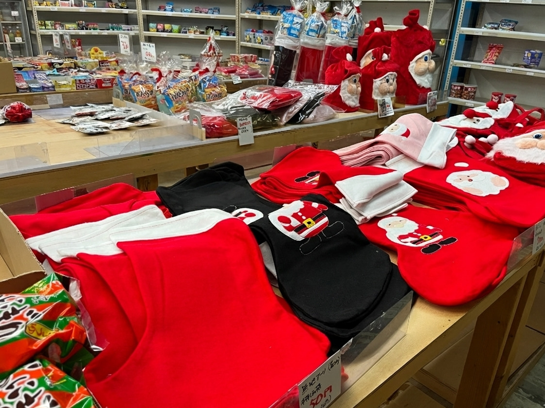 12月19日現在、店内はクリスマスのグッズやお菓子の詰め合わせなどもまだ売られていますが、時期も時期なのでクリスマス用のものは品薄になってきているそうです。プレゼントを入れられるかわいい大きな靴下などはまだありましたよ!