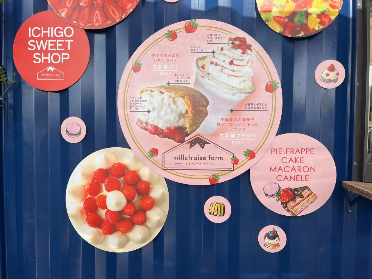 奈良県平群町にある「道の駅 大和路へぐり くまがしステーション」の敷地内にあるいちごスイーツ店「mille fraise farm(ミルフレーズファーム)」。パティシエといちご農家の兼業を目指す店主さんが作るいちごスイーツがいただけるお店です。