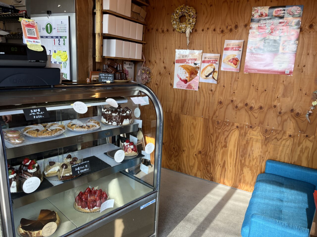 店主さんはいちご農家の経験もあるいちごのエキスパート。道の駅ならではの生産者との距離の近さを活かして、新鮮ないちごを使ったスイーツを作っておられます。古都華パイだけでなく、店内のショーケースにはおいしそうなケーキもたくさん並んでいます。